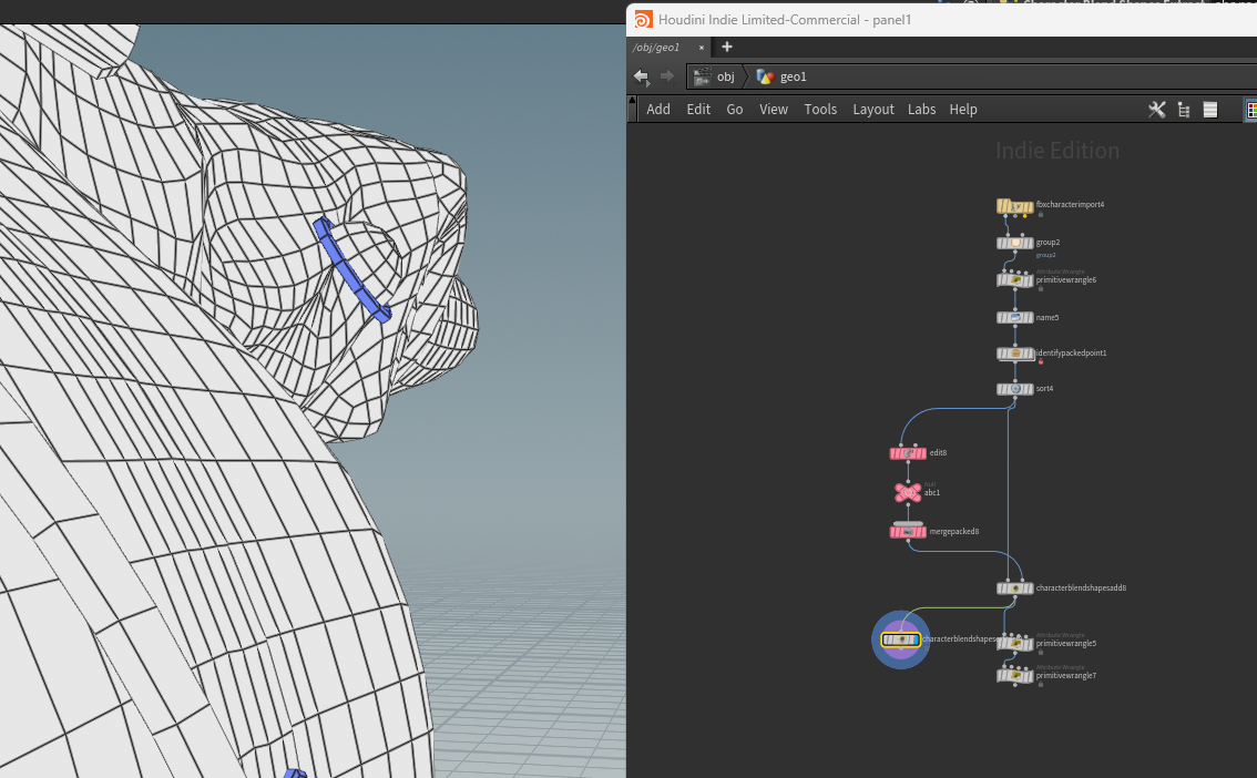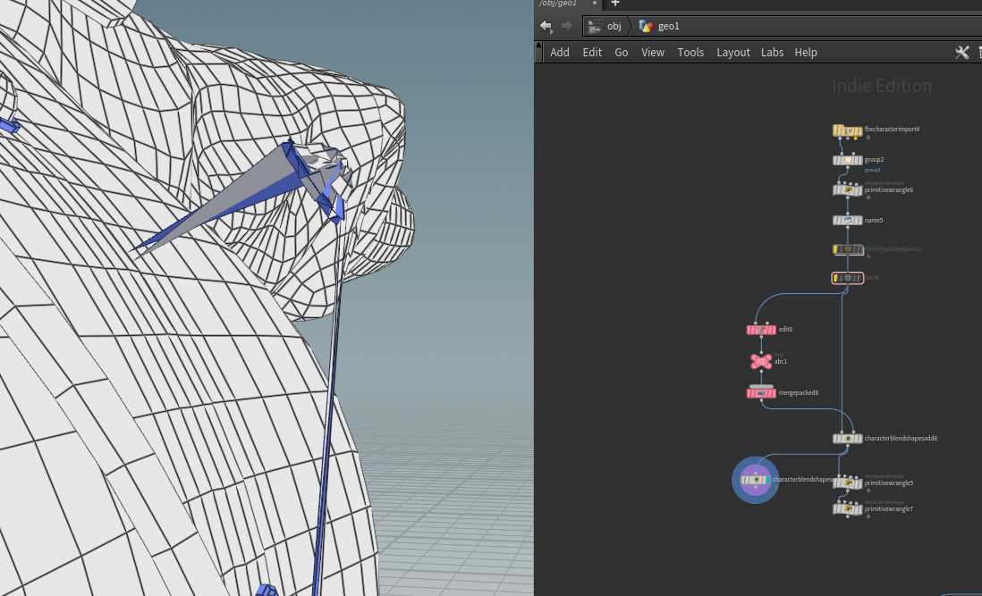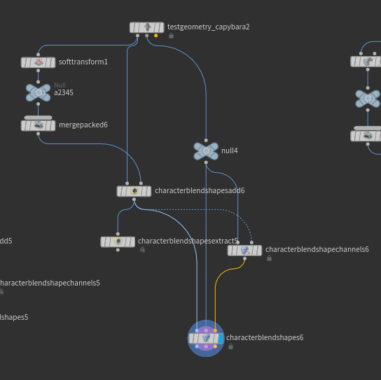 일단 Character Blendshapes Add는 패킹하면서 기존 포인트를 i@id에 넣는데 이 과정에서 지오메트리에 포함된 packed 메쉬(블렌드셰이프)가 빠지면서 정렬상 문제가 발생해 이렇게 꼬이는 것 같다.